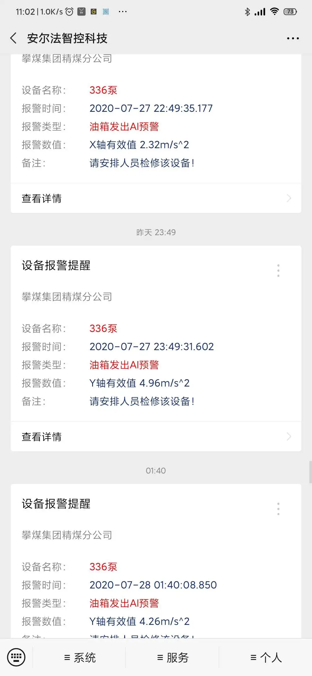 在此情況下,PdM系統(tǒng)的后臺(tái)程序在第一時(shí)間通過微信公眾號(hào)向安爾法的技術(shù)團(tuán)隊(duì)以及攀煤選煤廠的工作人員多次推送了設(shè)備報(bào)警信息。