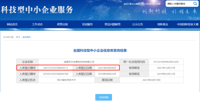 喜報(bào)!成都安爾法智控科技有限公司成功錄入2021年科技型中小企業(yè)信息庫(kù)。