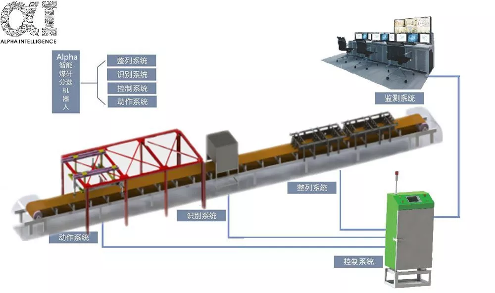安爾法同樣利用德國的垃圾分類的圖像識(shí)別技術(shù),采用 AI 技術(shù)中卷積神經(jīng)網(wǎng)絡(luò)技術(shù),用視覺對(duì)煤和矸石進(jìn)行深度學(xué)習(xí),利用大數(shù)據(jù)來識(shí)別煤和矸石,利用控制系統(tǒng)對(duì)機(jī)械手臂的控制,來自動(dòng)完成煤矸分揀工作。